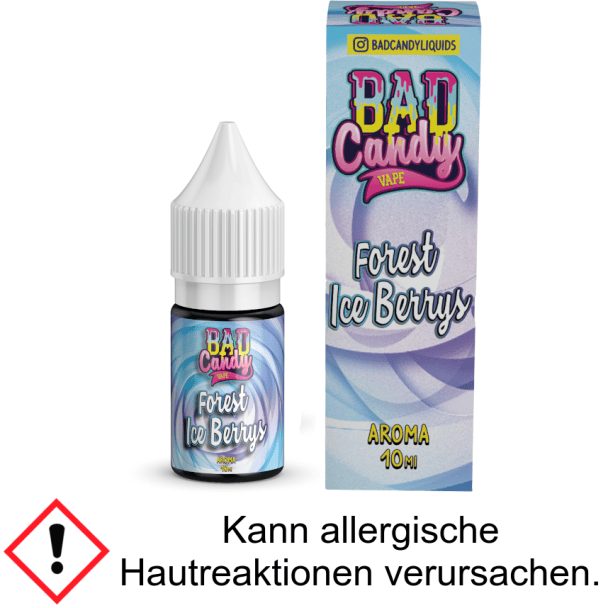Mit dem Bad Candy Aroma Forest Ice Berrys erhalten Sie ein Longfill-Aroma, das beim Dampfen den Geschmack von Waldfrüchten und Minze freisetzen wird. Das Aroma befindet sich mit 10 ml Inhalt in einer 10 ml Flasche. Es sollte beachtet werden, dass das Aroma höher konzentriert ist als normale E-Zigaretten Liquids und daher nicht für das unverdünnte Dampfen ausgelegt ist.