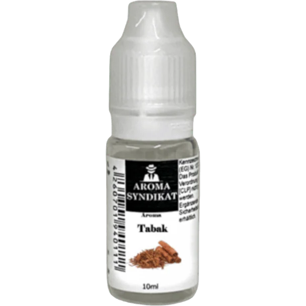 Das Aroma Syndikat Tabak Aroma wird Ihnen in einer gefüllten 10 ml Flasche ausgeliefert. Bitte beachten Sie, dass es sich um ein Aromakonzentrat handelt und Sie das Aroma nicht unverdünnt verwenden sollten. Das Aroma weist den Geschmack von Tabak auf.