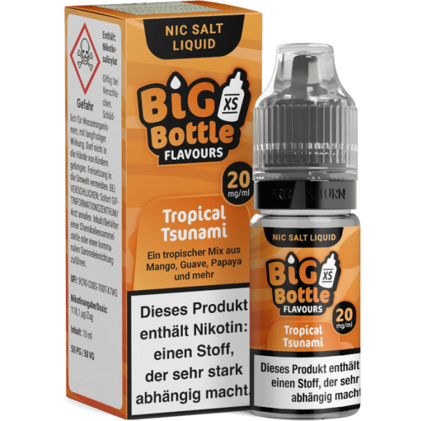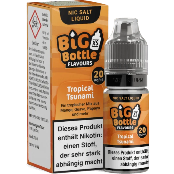 Das Tropical Tsunami Nikotinsalz Liquid stammt aus dem Hause Big Bottle. Beim Dampfen schmeckt es nach tropischen Früchten,wie Ananas,Mango,Guave und Papaya. Sie erhalten pro bestellter Einheit eine 10 ml Flasche mit 10 ml Inhalt. Das Nikotinsalz Liquid können Sie mit 10 mg/ml oder 20 mg/ml Nikotin dampfen. Es ist für den direkten Gebrauch in Ihrer E-Zigarette geeignet.