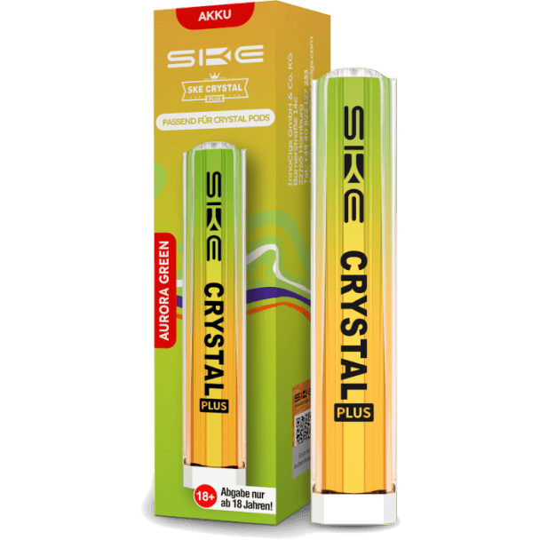 Der Crystal Plus Akku von SKE ist mit einer Kapazität von 400 mAh ausgestattet und wurde gezielt für die Verwendung mit den SKE Crystal Plus Pods entwickelt. Diese Pods können hier in unserem Shop mit vorbefüllten 2 Millilitern Nikotinsalz Liquid in 15 verschiedenen Geschmacksrichtungen erworben werden. In Kombination mit den Prefilled Pods beträgt die Ausgangsleistung des Crystal Plus Akkus 11 Watt. Die Aktivierung erfolgt durch Zug am Mundstück, und das Gerät zeichnet sich durch seine tastenlose und bedienelementfreie Gestaltung aus, was es besonders benutzerfreundlich macht, auch für Einsteiger. Durch die Möglichkeit, den Pod zu wechseln und den internen Akku aufzuladen, stellt der Crystal Plus eine nachhaltigere Alternative im Vergleich zu herkömmlichen Einweg-E-Zigaretten dar. Die kompatiblen Crystal Plus Pods werden durch einfaches Zusammenstecken mit dem Gehäuse des Akkus verbunden.