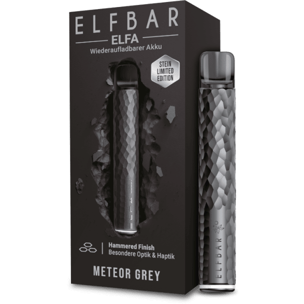 Für den ELFBAR Elfa Akku ist eine Sonderausführung erhältlich, die sich durch ihr Gehäuse aus Metall und eine besondere Oberflächenbeschaffenheit auszeichnet. Die Haptik ist an die von Gestein angelehnt und bietet dadurch eine verbesserte Griffigkeit. Diese spezielle Metall-Variante ist in den Farben Obsidian-Schwarz und Meteor-Grau verfügbar. Es handelt sich um eine limitierte Auflage, bei der die Stückzahl auf 15.000 Einheiten pro Farbvariante beschränkt ist.