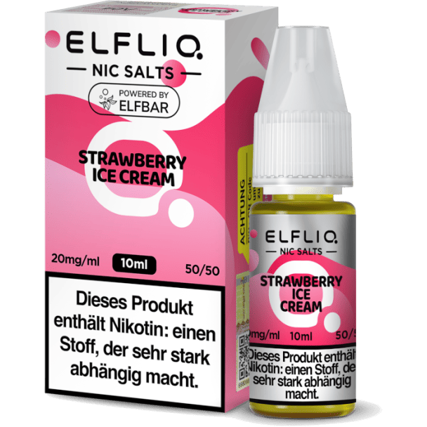 Das ELFLIQ Nikotinsalz Liquid Strawberry Ice Cream ist ein E-Liquid von Elf Bar mit dem Aroma von einem Erdbeereis. Es ist in den Nikotinstärken 10 mg/ml und 20 mg/ml erhältlich. Das Liquid ist in einer 10 ml Flasche mit 10 ml Inhalt erhältlich und kann sofort in einer E-Zigarette verwendet werden.