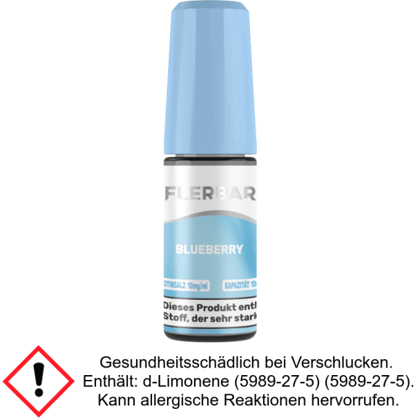 Das Nikotinsalz Liquid Blueberry von Flerbar zeichnet sich durch den Geschmack von Blaubeere aus, der beim Dampfen mit einer E-Zigarette entsteht. Das Liquid ist in den Nikotinstärken 10 mg/ml und 20 mg/ml erhältlich. Es wird in einer 10 ml Flasche geliefert und ist sofort einsatzbereit.