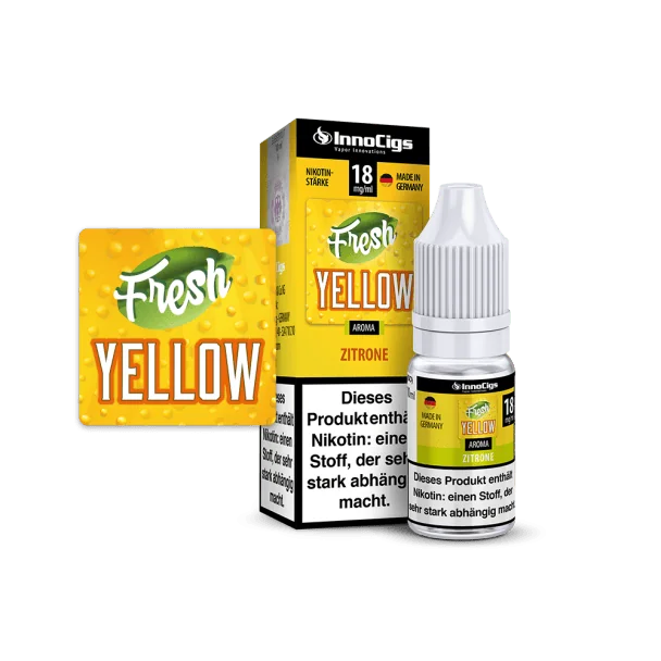 Das Aroma des Yellow Fresh Liquid schmeckt nach Zitronen, wenn es gedampft wird. Das Liquid mit dem Zitronen-Aroma wird von InnoCigs in Deutschland gefertigt und ist auch ohne Nikotin erhältlich. Zur Auswahl stehen neben den Einzelflaschen außerdem 10er Packs.