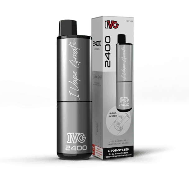 Der IVG 2400 Akku ist wiederaufladbar und besitzt eine Akkukapazität von 1.000 mAh. Falls die Energie erschöpft ist, kann er über den USB-C Anschluss aufgeladen werden. Der IVG 2400 Akku agiert als Basisgerät und ist auch als 4-Pod-System bekannt. Das IVG 2400 Basisgerät ermöglicht die Verwendung von insgesamt vier vorgefüllten IVG 2400 Pods, wodurch die Auswahl zwischen vier unterschiedlichen Geschmacksrichtungen möglich ist. Die Geschmacks Wechsel sind durch einfaches Drehen möglich. Die Bedienung des Geräts ist simpel dank der Zugautomatik, welche keine manuellen Einstellungen beim Dampfen erfordert. Mit dem IVG 2400 4-Pod-System Basisgerät, das alle vier Pods (jeweils mit 2 Millilitern Liquid) nutzt, sind bis zu 2400 Züge möglich. Beachten Sie, dass die tatsächliche Anzahl variieren kann, abhängig vom individuellen Nutzerverhalten.