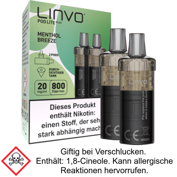 Linvo - Pod Lite Plus Cartridge Menthol Breeze 20 mg/ml (2 Stück pro Packung)