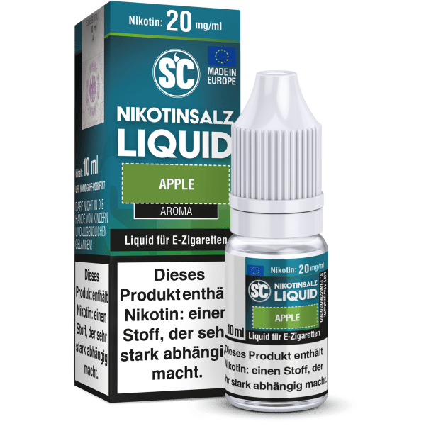 Beim Dampfen des Apple Nikotinsalz Liquids von SC wird der Geschmack von Äpfeln freigesetzt. Das SC Apple Nikotinsalz Liquid erhalten Sie in den Nikotinstärken 10 mg/ml und 20 mg/ml. Das Liquid wird in einer 10 ml Flasche ausgeliefert.