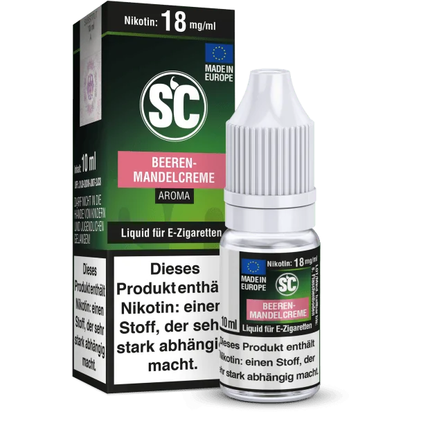 Mit dem SC Liquid Beeren-Mandelcreme dampfen Sie ein Liquid, welches den Geschmack eines Kuchens mit Mandelcreme und Beeren entfaltet. Das Liquid wird in Europa hergestellt und dabei mit 10 ml in einer 10 ml Liquidflasche abgefüllt. Auswählen können Sie bei diesem Liquid zwischen den Nikotinstärken 0 mg/ml, 3 mg/ml, 6 mg/ml, 12 mg/ml und 18 mg/ml.