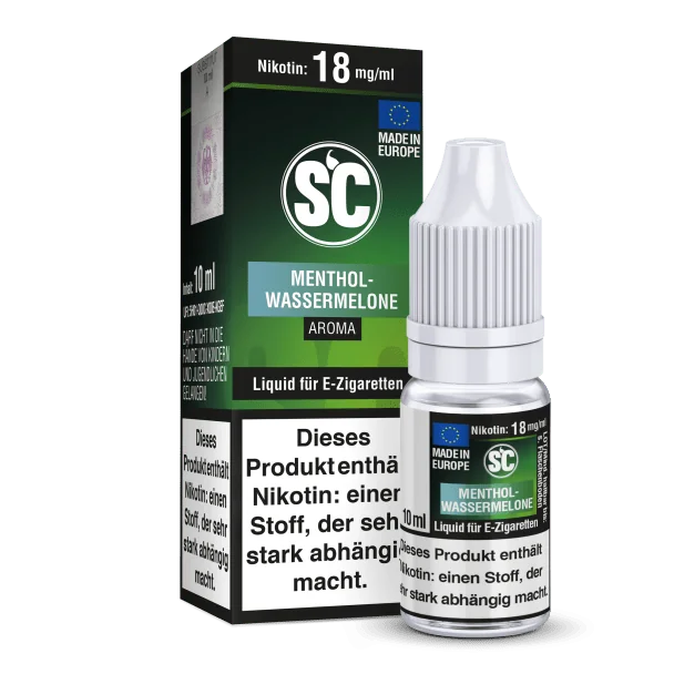Mit jeder SC Liquid Flasche, erhalten Sie 10 ml Liquid von dem gewählten Liquid Aroma und der gewählten Stärke. Ihnen stehen insgesamt 5 Stärken mit und ohne Nikotin zu Auswahl. Das SC Menthol-Wassermelone E-Zigaretten Liquid schmeckt beim Dampfen nach Wassermelone und Menthol.