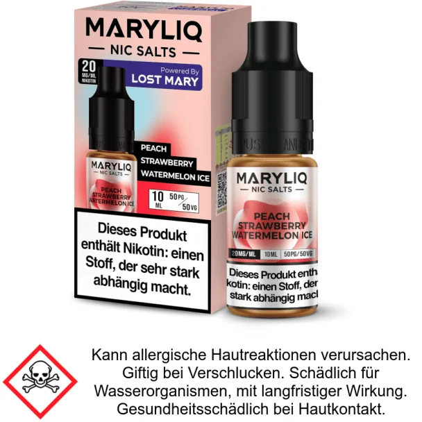 Liquid Peach Strawberry Watermelon Ice 20 mg/ml Nikotinsalz - MARYLIQ