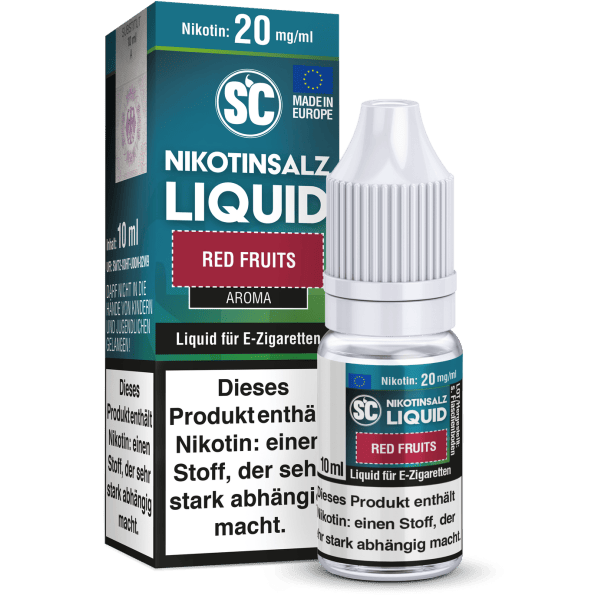 Beim Dampfen des Red Fruits Nikotinsalz Liquids von SC wird der Geschmack von roten Früchten und Menthol freigesetzt. Das SC Red Fruits Nikotinsalz Liquid erhalten Sie in den Nikotinstärken 10 mg/ml und 20 mg/ml. Das Liquid wird in einer 10 ml Flasche ausgeliefert.
