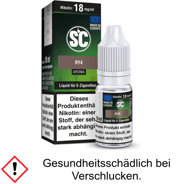 Mit jeder SC Liquid Flasche, erhalten Sie 10 ml Liquid von dem gewählten Liquid Aroma und der gewählten Stärke. Ihnen stehen insgesamt 5 Stärken mit und ohne Nikotin zu Auswahl. Das SC RY4 Tabak E-Zigaretten Liquid schmeckt beim Dampfen nach Tabak.