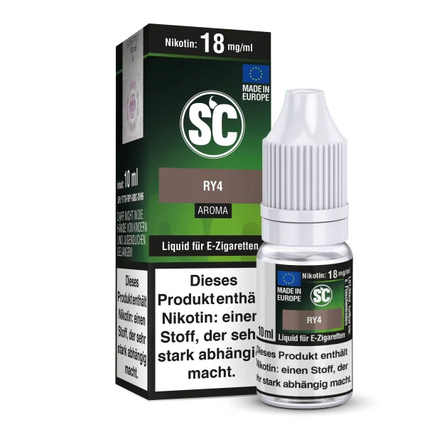 Mit jeder SC Liquid Flasche, erhalten Sie 10 ml Liquid von dem gewählten Liquid Aroma und der gewählten Stärke. Ihnen stehen insgesamt 5 Stärken mit und ohne Nikotin zu Auswahl. Das SC RY4 Tabak E-Zigaretten Liquid schmeckt beim Dampfen nach Tabak.