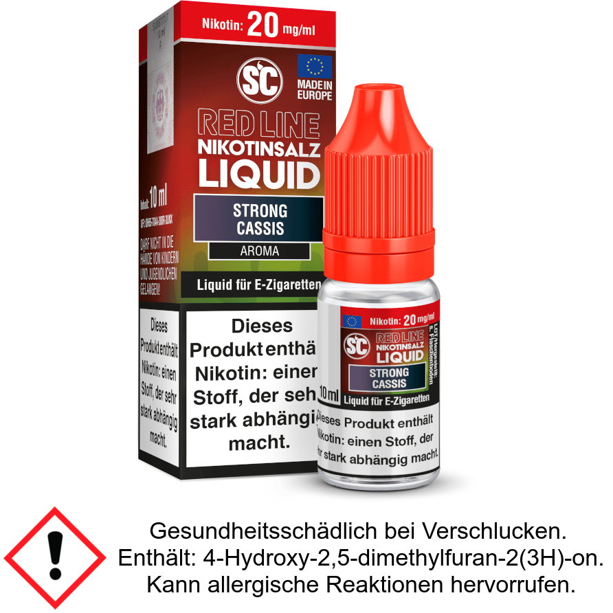 Mit dem Nikotinsalz Liquid Strong Cassis aus der Serie Red Line von SC erhalten Sie ein Liquid, welches beim Dampfen den intensiven Geschmack von Himbeeren und Cassis freisetzt. Die Red Line Nikotinsalz Liquids sind gebrauchsfertige Liquids und daher für den direkten Gebrauch in Ihrer E-Zigarette geeignet. Die Red Line Nikotinsalz Liquids erhalten Sie wahlweise in den Stärken mit 10 mg/ml und 20 mg/ml.