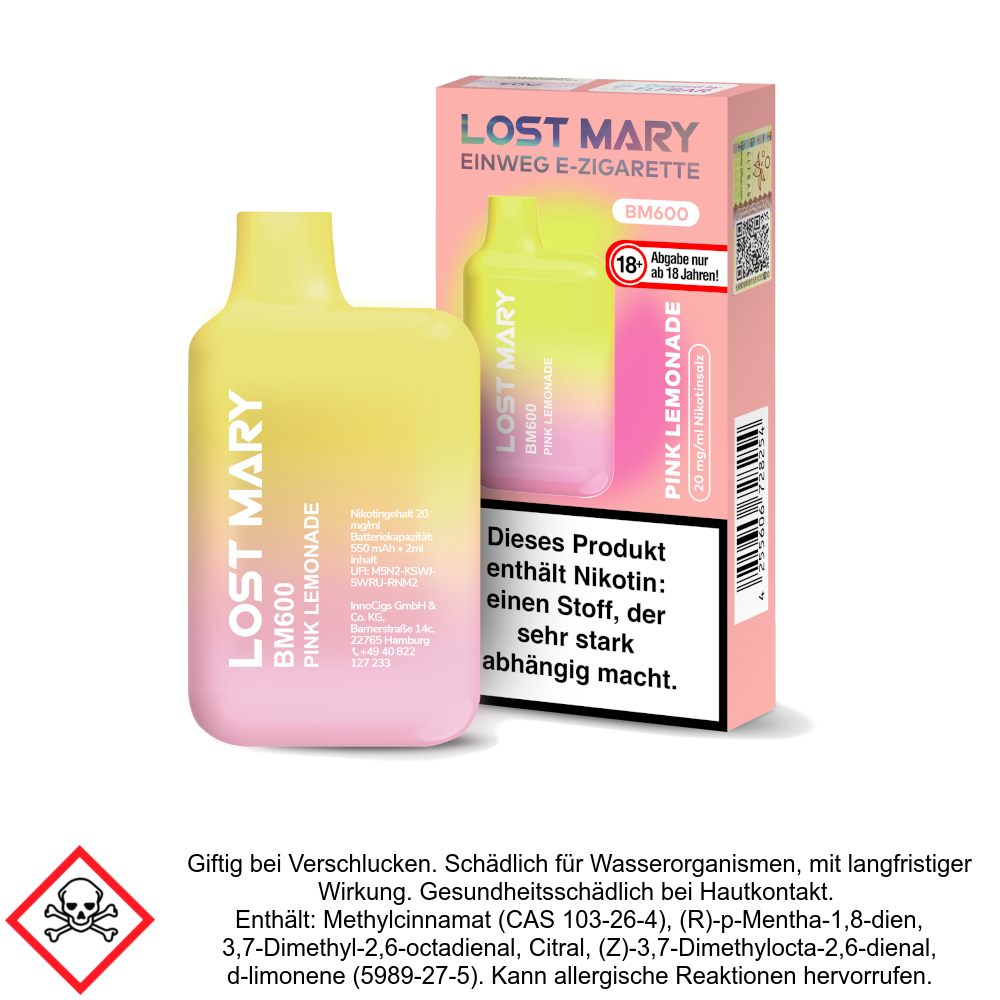 Lost Mary BM600 - Einweg E-Zigarette - Pink Lemonade 20mg/ml