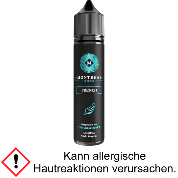 Das Montreal Original Aroma "French" bietet einen Geschmack, der als kräftiger Tabak nach französischer Art (würzig, herb und intensiv) charakterisiert wird. Es handelt sich um ein Longfill-Aroma, geliefert als 6 ml Konzentrat in einer 60 ml Liquidflasche. Die Besonderheit der Herstellung liegt in der Extraktion aus industriellen Tabakmischungen, um einen Geschmack zu erzielen, der eine Äquivalenz zu bekannten Zigaretten aufweisen soll und sich vom reinen Tabakblattgeschmack unterscheidet. Nutzer beschreiben das Dampferlebnis als weich und nicht lange nachklingend. Aufgrund der hohen Konzentration ist das Aroma nicht für das direkte Dampfen geeignet und muss vor dem Gebrauch angemischt werden.