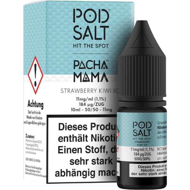 Aus dem Hause Pod Salt Fusion kommt das Nikotinsalz Liquid Strawberry Kiwi Ice. Beim Dampfen in Ihrer E-Zigarette wird der Geschmack von Erdbeere und Kiwi freigesetzt. Sie erhalten pro Flasche 10 ml des Nikotinsalz Liquids in 11 mg/ml oder 20 mg/ml Stärke. Das Nikotinsalz Liquid ist für den direkten Gebrauch in Ihrer E-Zigarette geeignet.