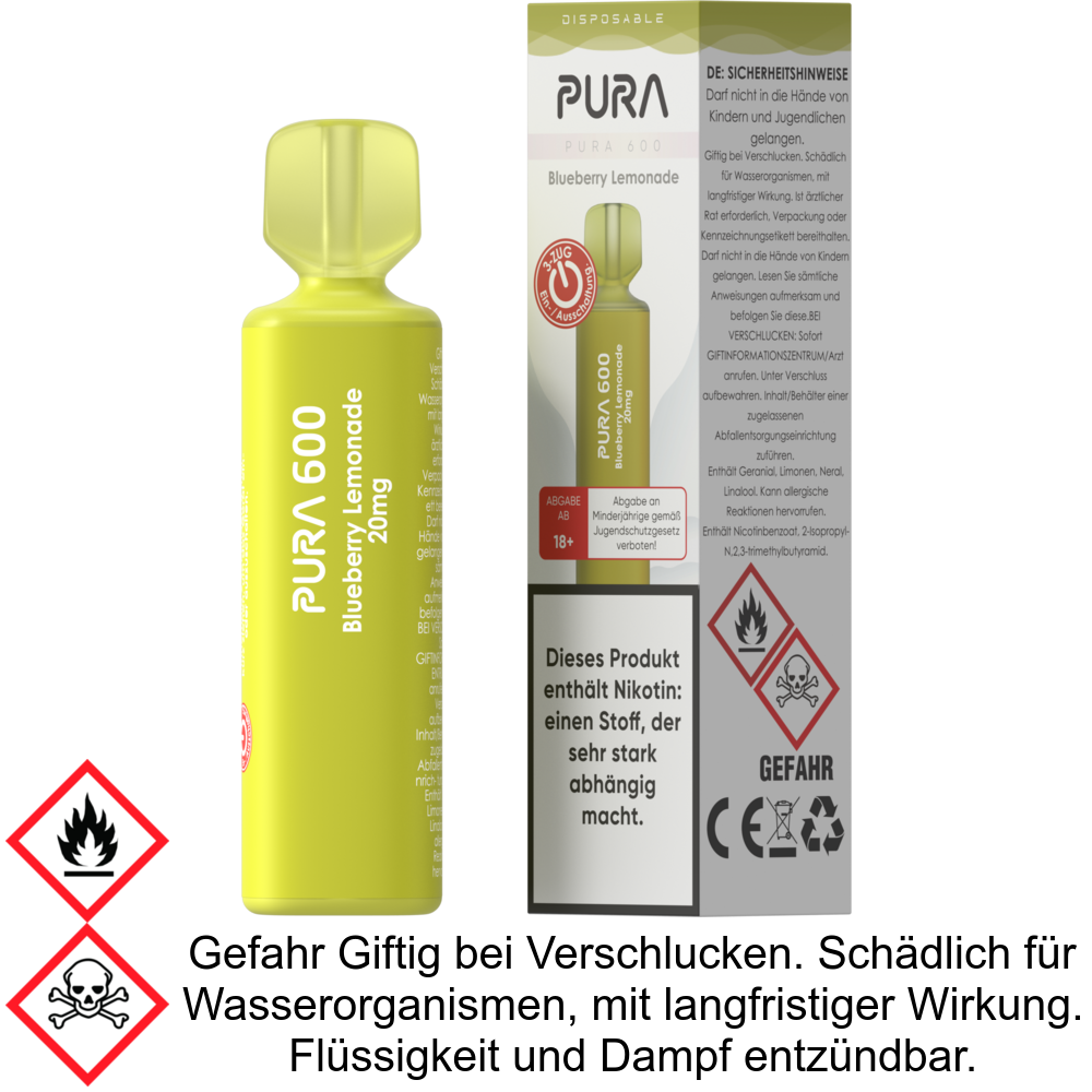 Pura 600 Blueberry Lemonade 20 mg/ml - Einweg E-Zigarette