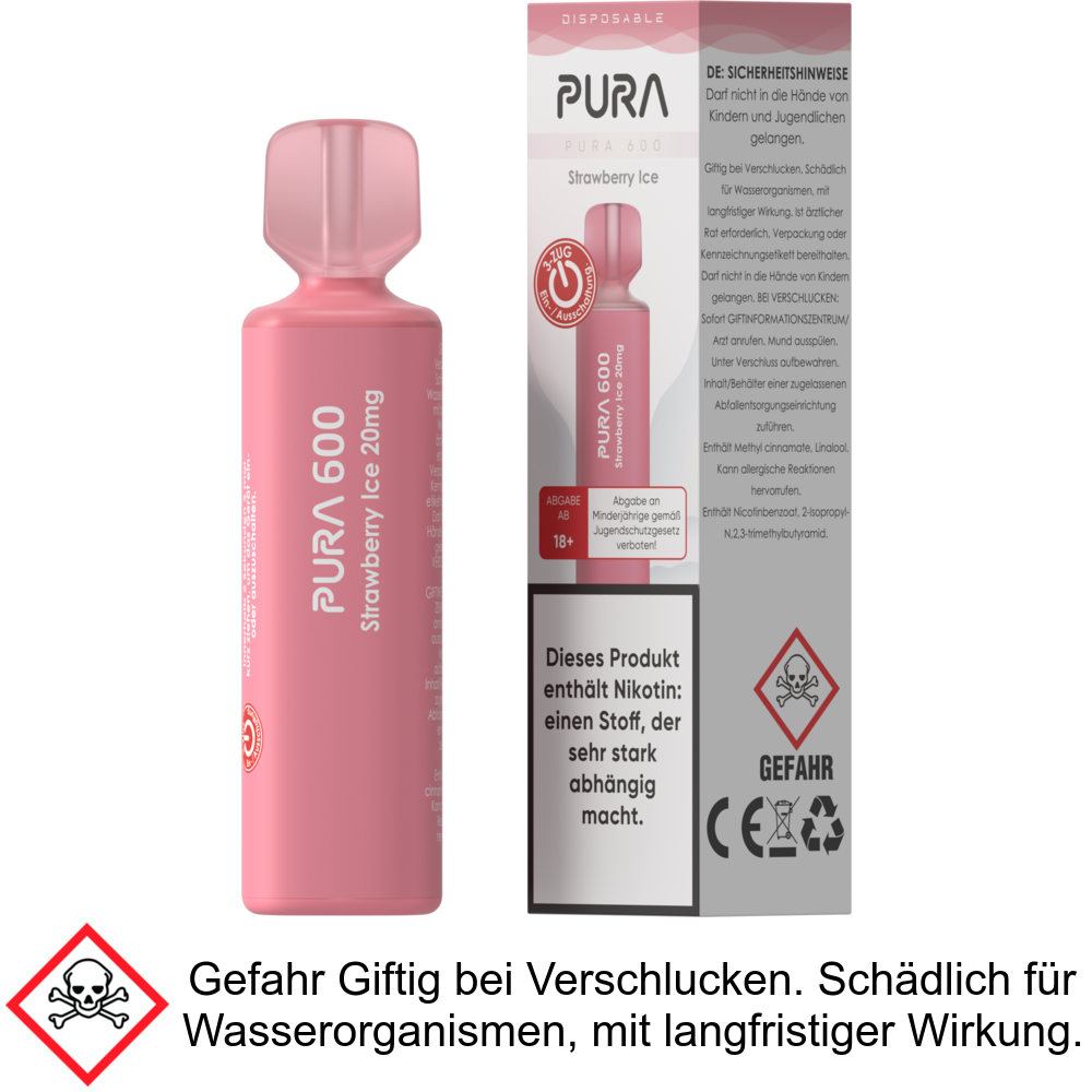 Pura 600 Strawberry Ice 20 mg/ml - Einweg E-Zigarette