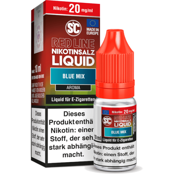 Mit dem Nikotinsalz Liquid Blue Mix aus der Serie Red Line von SC erhalten Sie ein Liquid, welches beim Dampfen den intensiven Geschmack von Anis, Himbeeren, Brombeeren, Erdbeeren und einem Beerenmix freisetzt. Die Red Line Nikotinsalz Liquids sind gebrauchsfertige Liquids und daher für den direkten Gebrauch in Ihrer E-Zigarette geeignet. Die Red Line Nikotinsalz Liquids erhalten Sie wahlweise in den Stärken mit 0 mg/ml, 10 mg/ml und 20 mg/ml.