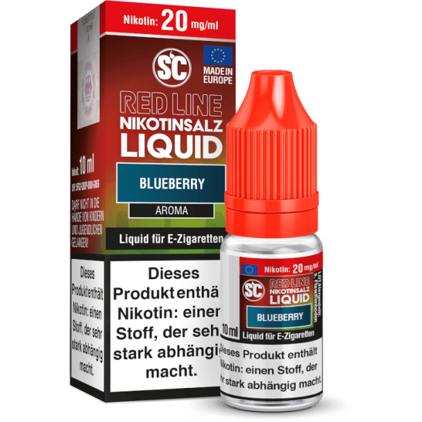 Mit dem Nikotinsalz Liquid Blueberry aus der Serie Red Line von SC erhalten Sie ein Liquid, welches beim Dampfen den intensiven Geschmack von Blaubeeren und einer kühlen Note freisetzt. Die Red Line Nikotinsalz Liquids sind gebrauchsfertige Liquids und daher für den direkten Gebrauch in Ihrer E-Zigarette geeignet. Die Red Line Nikotinsalz Liquids erhalten Sie wahlweise in den Stärken mit 10 mg/ml und 20 mg/ml.