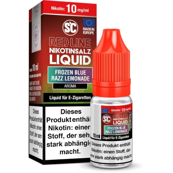 Das Nikotinsalz Liquid "Frozen Blue Razz Lemonade" von SC, zugehörig zur Red Line Serie, ist eine gebrauchsfertige Flüssigkeit für E-Zigaretten. Es zeichnet sich durch ein Geschmacksprofil aus, das Aromen von Blaubeere, Himbeere und Zitrone mit einer kühlen Note vereint. Dieses Produkt wird in einer 10 ml Liquidflasche angeboten und ist in den Nikotinstärken 0 mg/ml, 5 mg/ml, 10 mg/ml sowie 20 mg/ml verfügbar.