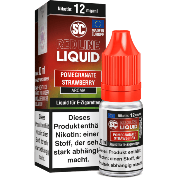 Bei diesem SC Red Line Nikotin Liqud "Pomegranate Strawberry" trifft die leicht herbe Note des Granatapfels auf die bekannte Süße der Erdbeere. Ein kühler Akzent rundet das Geschmackserlebnis ab und sorgt für zusätzliche Frische. Das 10 ml Liquid ist sofort einsatzbereit und in fünf abgestuften Nikotinstärken erhältlich.