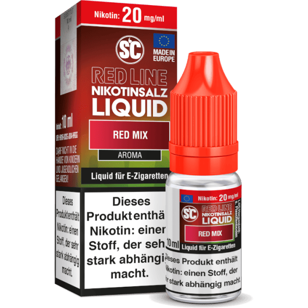 Mit dem Nikotinsalz Liquid Red Mix aus der Serie Red Line von SC erhalten Sie ein Liquid, welches beim Dampfen den intensiven Geschmack von Himbeeren, Brombeeren, Erdbeeren und einem Beerenmix freisetzt. Die Red Line Nikotinsalz Liquids sind gebrauchsfertige Liquids und daher für den direkten Gebrauch in Ihrer E-Zigarette geeignet. Die Red Line Nikotinsalz Liquids erhalten Sie wahlweise in den Stärken mit 0 mg/ml, 10 mg/ml und 20 mg/ml.