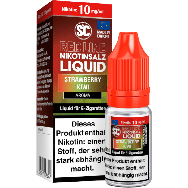 Mit dem Nikotinsalz Liquid Strawberry Kiwi aus der Serie Red Line von SC erhalten Sie ein Liquid, welches beim Dampfen den intensiven Geschmack von Erdbeere und Kiwi mit einer frischen Note freisetzt. Die Red Line Nikotinsalz Liquids sind gebrauchsfertige Liquids und daher für den direkten Gebrauch in Ihrer E-Zigarette geeignet. Die Red Line Nikotinsalz Liquids erhalten Sie wahlweise in den Stärken mit 0 mg/ml, 5 mg/ml, 10 mg/ml und 20 mg/ml.