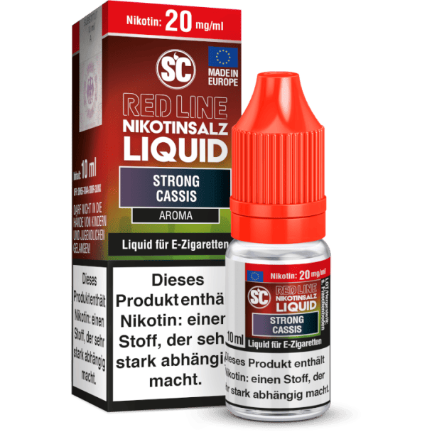 Mit dem Nikotinsalz Liquid Strong Cassis V2 aus der Serie Red Line von SC erhalten Sie ein Liquid, welches beim Dampfen den intensiven Geschmack von Himbeeren und Cassis mit einer frischen Note freisetzt. Die Red Line Nikotinsalz Liquids sind gebrauchsfertige Liquids und daher für den direkten Gebrauch in Ihrer E-Zigarette geeignet. Die Red Line Nikotinsalz Liquids erhalten Sie wahlweise in den Stärken mit 0 mg/ml, 5 mg/ml, 10 mg/ml und 20 mg/ml.