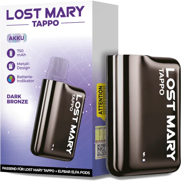 Der Lost Mary Tapp Akku ist das passende Gegenstück zu den Lost Mary Tappo Pods, die in verschiedenen Geschmacksrichtungen erhältlich sind. Die fest verbaute Akkuzelle verfügt über eine Kapazität von 750 mAh. Um den Akku mit neuer Energie zu versorgen, kann er mit einem USB-C Ladekabel, welches nicht im Lieferumfang enthalten ist, geladen werden. Der Akku wird durch einfaches Zusammenstecken mit den separat erhältlichen Tappo Pods verbunden. Verbunden werden kann der Akku aber nicht nur mit den Tappo Pods von Lost Mary, sondern auch mit den Elfbar Elfa Pods, die in vielen verschiedenen Sorten erhältlich sind. Dank der Möglichkeit, den Akku aufzuladen und die Pods auszutauschen, bietet die Lost Mary Tappo eine nachhaltigere Alternative zu herkömmlichen Einweg-E-Zigaretten.