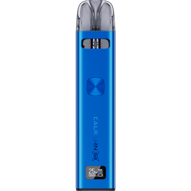 Die Caliburn G3 E-Zigarette setzt sich aus dem 900mAh Akku und den Caliburn G3 Pods zusammen. Der Akku dieses Modells verfügt über eine feste Verbindung zur Akkuzelle und kann mittels des mitgelieferten USB-C-Ladekabels aufgeladen werden. Der Caliburn G3 Pod bietet Platz für bis zu 2,5 ml Liquid. Die beigefügten Pods ermöglichen eine Auswahl zwischen den Widerständen von 0,6 Ohm und 0,9 Ohm. Aufgrund dieser Variabilität eignet sich die Caliburn G3 E-Zigarette sowohl für das Dampfen im RDL- als auch im MTL-Bereich. Bitte berücksichtigen Sie, dass die fest verbauten Verdampferköpfe in den Pods zu den Verschleißteilen einer E-Zigarette zählen. Ein regelmäßiges Austauschen der Pods ist daher ratsam.