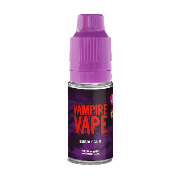 Die Vampire Vape Liquids werden in Großbritannien entwickelt und hergestellt. Pro bestellter Flasche erhalten Sie insgesamt 10 ml des Vampire Vape Liquids. Das Liquid ist für die Verwendung in E-Zigaretten ausgelegt und ist in verschiedenen Nikotinstärken erhältlich. Wenn Sie das Vampire Vape Liquid Bubblegum dampfen, entsteht der Geschmack von Frucht-Kaugummi. Jede Flasche enthält 10 ml Liquid in Ihrer gewählten Stärke.