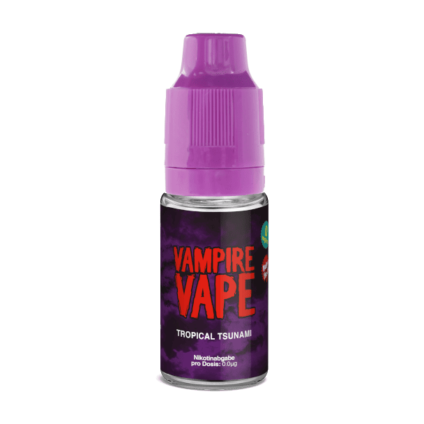 Die Vampire Vape Liquids werden in Großbritannien entwickelt und hergestellt. Pro bestellter Flasche erhalten Sie insgesamt 10 ml des Vampire Vape Liquids. Das Liquid ist für die Verwendung in E-Zigaretten ausgelegt und ist in verschiedenen Nikotinstärken erhältlich. Wenn Sie das Vampire Vape Liquid Tropical Tsunami dampfen, entsteht der Geschmack von Ananas und Mango. Jede Flasche enthält 10 ml Liquid in Ihrer gewählten Stärke.