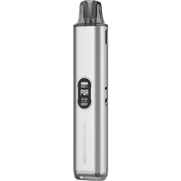 Das Vibe E-Zigaretten Set von Vaporesso setzt sich aus einem Akku mit 1.100 mAh Kapazität und einem Vibe Pod mit Dual Mesh Coil zusammen. Der Pod enthält zwei Widerstände: 0,6 Ohm für das restriktive direkte Lungendampfen (RDL) und 0,8 Ohm, der speziell für das Mouth-to-Lung-Dampfen (MTL) geeignet ist. Durch die integrierte Zugautomatik kann das Gerät ohne eine Feuertaste betrieben werden. Über das 0,54 Zoll große OLED-Display lassen sich wesentliche Parameter wie Akkustand und Leistung ablesen. Der Vibe Pod bietet ein Fassungsvermögen von 4,5 ml und wird mithilfe eines seitlichen Side-Filling-Systems befüllt. Die Airflow-Control ermöglicht es, den Luftstrom individuell anzupassen. Der Pod ist so konstruiert, dass er sich bei Bedarf unkompliziert austauschen lässt. Dank der Abmessungen von 121,1 mm x 25 mm x 16 mm bleibt das Gerät kompakt und handlich. Aufgeladen wird der Akku über einen USB-C-Anschluss mit einem Ladestrom von DC 5V / 1A. Zum Lieferumfang gehören der Vibe Akku, ein bereits eingesetzter Vibe Pod mit Dual Mesh Coil (0,6 Ohm und 0,8 Ohm) sowie eine Bedienungsanleitung.